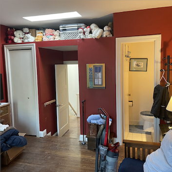 | BRIEF | Reconfiguration and refurbishment of a 17′-″ x 1′-0″ Guest Suite to enlarge the Powder Room, increase storage capacity and convenience, and open entry corridor to skylight. |
